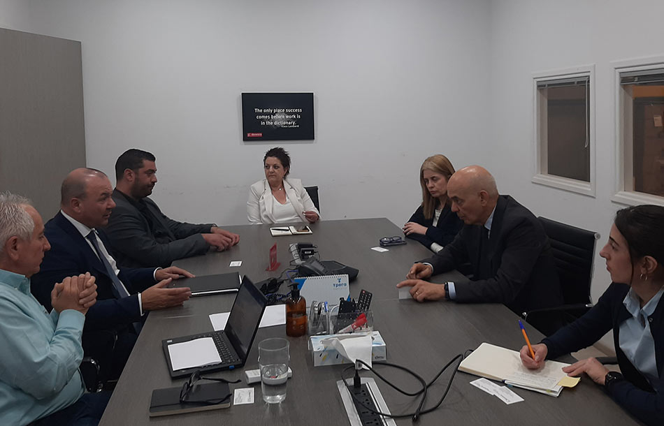 Τη Δευτέρα, 5 Μαΐου 2025, πραγματοποιήθηκε στα γραφεία του Εμπορικού και Βιομηχανικού Επιμελητηρίου Λάρνακας συνάντηση μεταξύ του Προέδρου του Ε.Β.Ε.Λ., Δρ. Νάκη Αντωνίου, και του Διευθυντή, κ. Χαράλαμπου Ανδρέου, με τον Υπουργό Μεταφορών, Επικοινωνιών και Έργων, κ. Αλέξη Βαφεάδη, και τη Γενική Διευθύντρια του Υπουργείου, Δρ. Μαρίνα Ιωάννου Χασάπη. Στη συνάντηση παρευρέθηκε επίσης ο Δήμαρχος Λάρνακας, κ. Ανδρέας Βύρας.