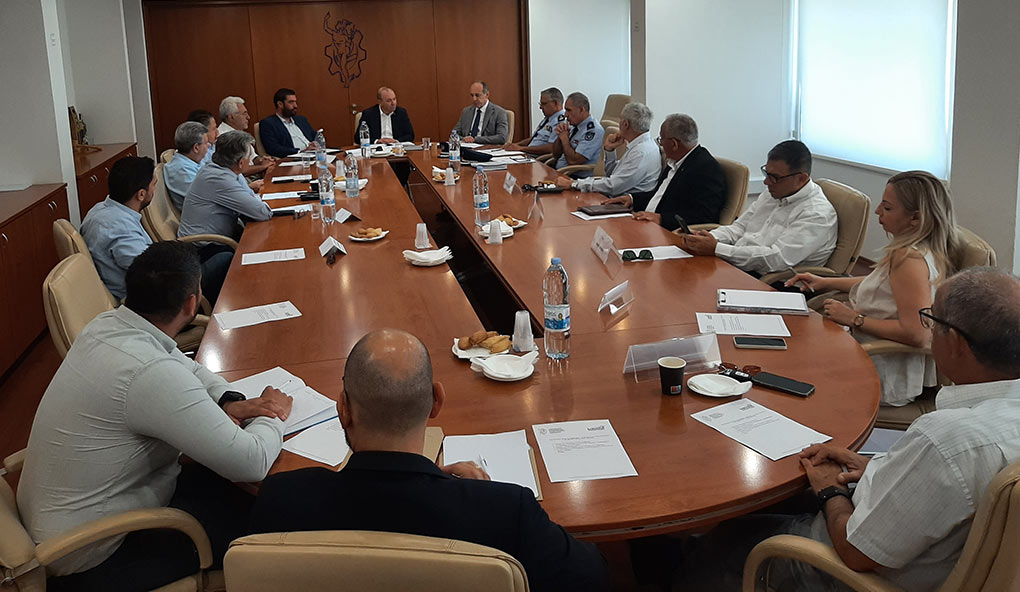 Το Εμπορικό και Βιομηχανικό Επιμελητήριο Λάρνακας (ΕΒΕΛ) και η Εταιρεία Τουριστικής Ανάπτυξης και Προβολής Περιφέρειας (ΕΤΑΠ) Λάρνακας πραγματοποίησαν σήμερα συνάντηση στα γραφεία του Επιμελητηρίου, με τον Υπουργό Δικαιοσύνης και Δημόσιας Τάξης κ. Μάριο Χαρτσιώτη, τον Υπαρχηγό Αστυνομίας κ. Πανίκο Σταύρου και τον Αστυνομικό Διευθυντή Λάρνακας κ. Ιωάννη Σωτηριάδη.